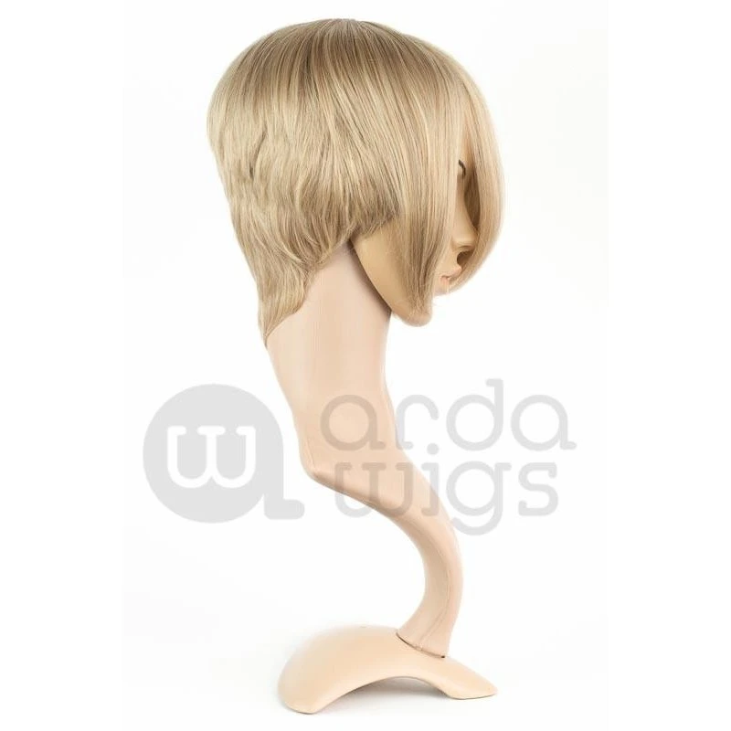 This wig is extra short in the back and has 12″ (30.5 cm) long bangs in the front. Instead of a side part in this wig, there is a small 1.5″ (2 cm) radial skin top at the crown of the head, making the long bangs easy to part on whatever side the character design calls for.