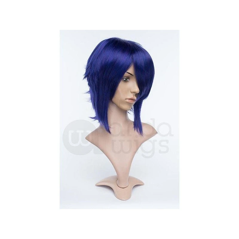 This wig has short, choppy layers in the back with long side sections at the ears. The bangs are long and reach just around the nose on a person. Jaguar’s overall length measures 5 » to 6 » (13 cm to 15 cm). This wig has a crimped top – thick and great for spiking, teasing, fluffing, or leaving as-is.